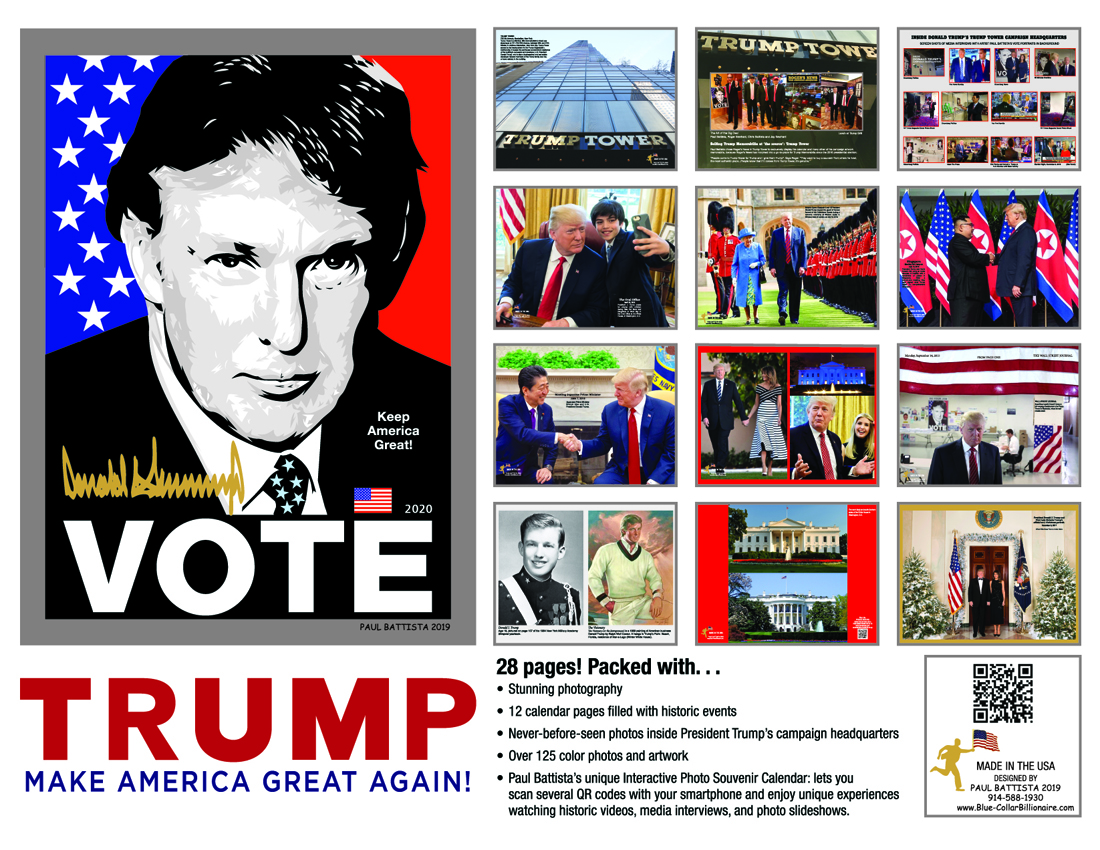 This unique 28-page calendar is a must-have for every history buff or Trump fan.